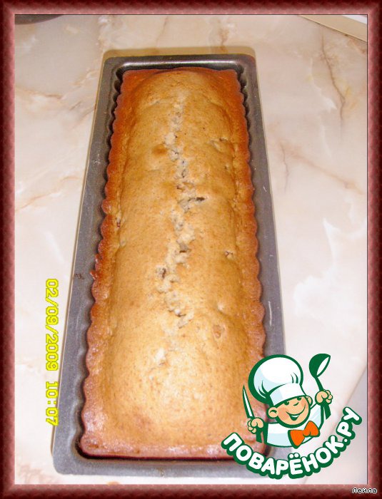 Выпекать 1 час 10 минут при температуре 180° С, внимательно следя за тем, чтобы кекс не пригорел.