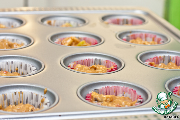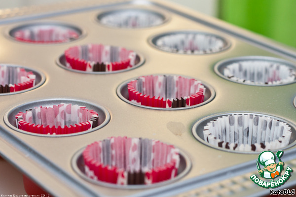 2. Разогреть духовку до 180 градусов. Смазать формы маслом, либо вложить бумажные вкладыши.