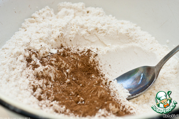 3. Просеять муку, смешать ее с разрыхлителем. Добавить ванилин и корицу.
