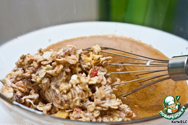 6. В эту же смесь добавить настоявшиеся мюсли и йогурт.