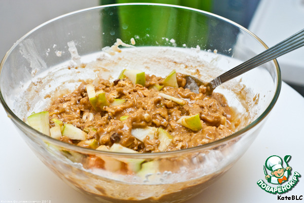 8. В получившееся тесто добавить яблоки и аккуратно перемешать.