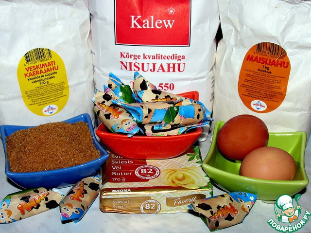 Сухие дрожжи (сушила сама) замочила в воде и добавила две столовых ложки коричневого сахара. Как только появилась шапочка, перелила в миску и насыпала все три вида муки, разрыхлитель, ванилин, соль и оставшийся сахар. (Кукурузная и овсяная мука придают кексам особый вкус. Муку в ингредиентах лучше не менять, иначе вкус изменится).