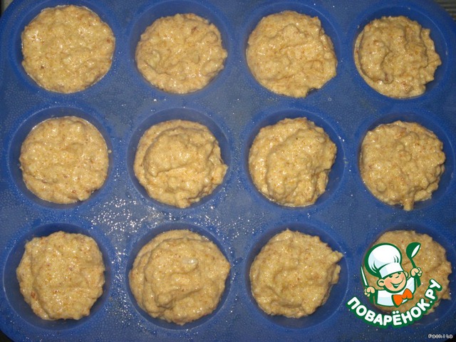 Получившуюся массу выкладываем в формочки и ставим запекать, в предварительно нагретую духовку, до готовности (проверяем лучинкой).