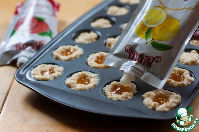 Например, сделали углубления в 5-6 кексах, заполнили их джемом. Лимонным, например.