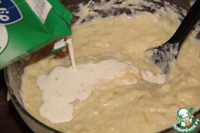 Добавить сливки. Тесто должно быть, как густая сметана.