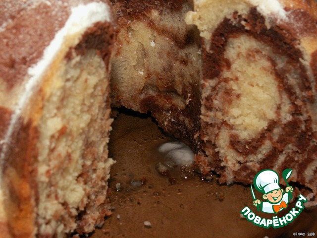 Осторожно ножиком смешать слои, чтобы получился эффект "мрамора". Так делать, пока не закончится всe тесто.