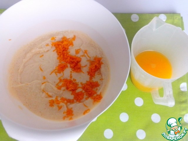 Добавить цедру и сок, перемешать.