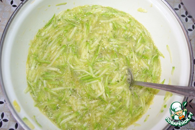 Кабачок натереть на крупной терке.