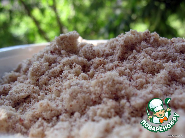 Смолоть орехи с сахаром в кофемолке в импульсном режиме.