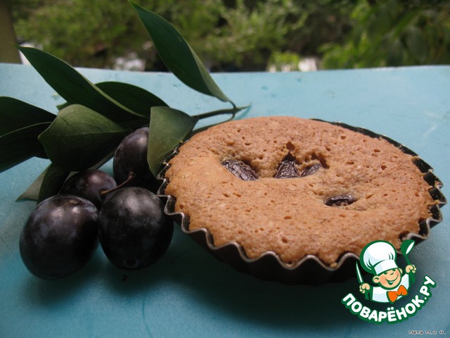 Вылить тесто в формочки на 2/3, сверху распределить сливы, можно верх посыпать 2 ст.л. сахара (тогда корочка будет слегка карамельной) и выпекать около 50 минут.