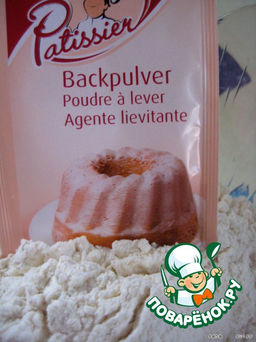 муку перемешиваем с разрыхлителем, сахаром и добавляем шпинатную массу (охлажденную до теплого состояния);