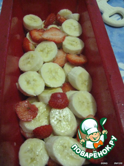 Вымытую клубнику и бананы чистим и нарезаем кружочками.
