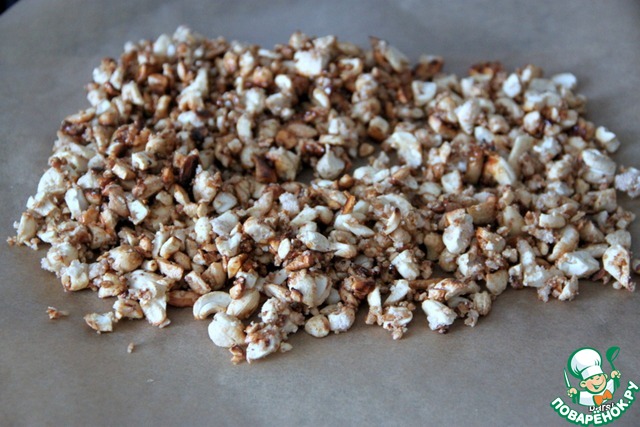 Орехи распределить в один слой на силиконовый коврик или бумагу для выпечки, для полного остывания