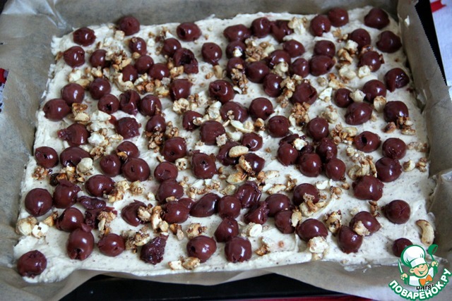 Выложить сверху подготовленную вишню и 1/3 орехового кроканта.