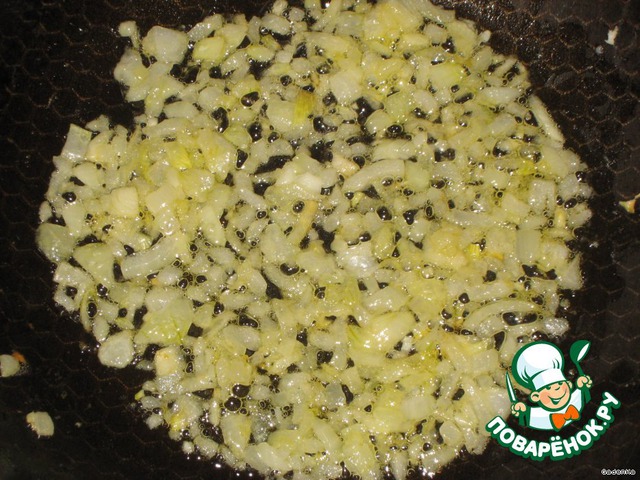 лук мелко порезать и обжарить на растительном или сливочном масле до золотистого цвета.