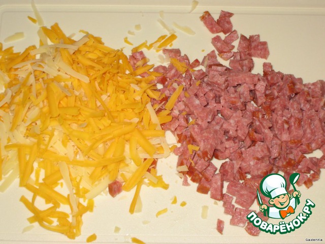 Я брала два вида сыра, пармезан – на мелкой терке и чеддер – на крупной.