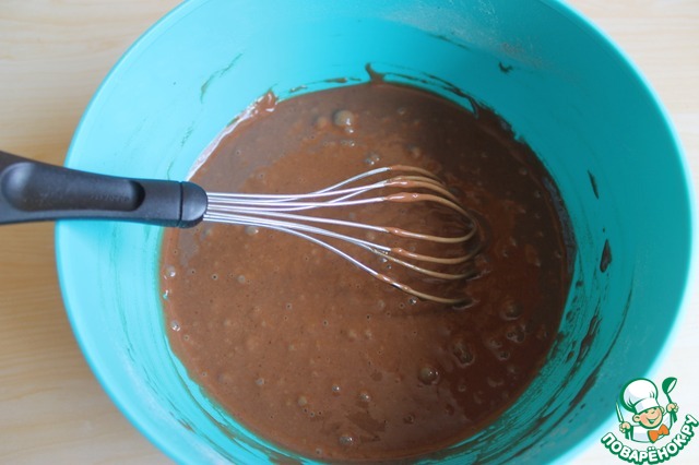 Выливаем в форму. У меня 9 на 24см. Но можно и круглую, например 24см. Ставим в разогретую духовку на 20 минут при 180гр