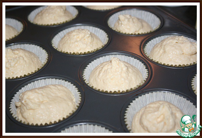 6. Распределить тесто по стаканчикам (3/4 стаканчика наполнить тестом) и отправить в духовку на 20 минут (до готовности) при 180*С.