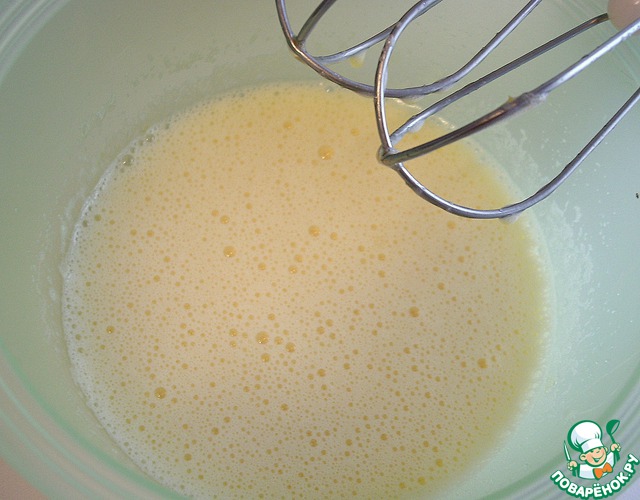 3 яйца взбить с сахаром до белезны и растворения сахара. Смешать муку с разрыхлителем теста, просеять в яичную смесь, добавить растопленное, но не горячее, сливочное масло (50 гр), йогурт. Смешать все до получения однородного теста.