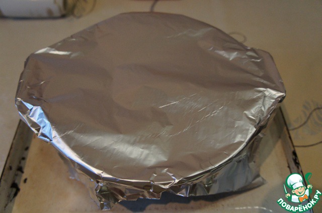 Тщательно накрыть форму фольгой и поставить в разогретую духовку. Выпекать 50-60 минут при температуре 160-180*С (зависит от особенностей духовки).