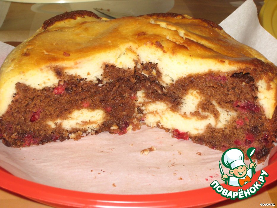 Здесь подойдет любая кислая ягода, они очень удачно вписываются в сочетании с шоколадом. Я его делала и с вишней и с черной смородиной, но на данный момент у нас много брусники.