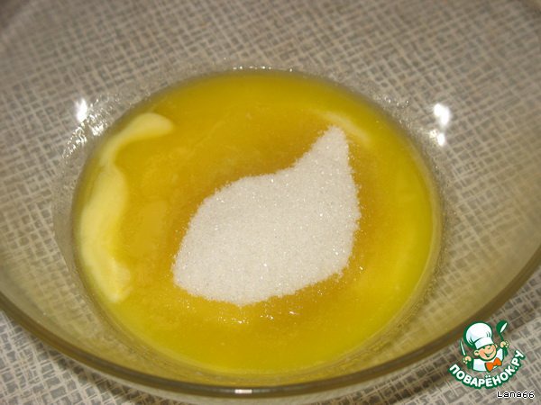 В мягкое сливочное масло высыпать сахар и соль. Хорошо размешать.