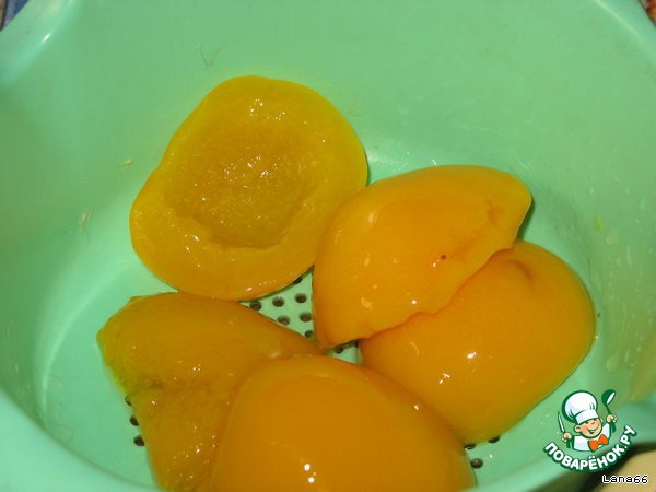 Персики откинуть на дуршлаг, чтобы стек сок.