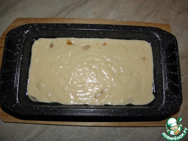Форму смазать маслом, выложить тесто и разровнять. Разогреть духовку 175%, поставить выпекать на 40-45минут (смотреть по готовности, может чуть больше или меньше)