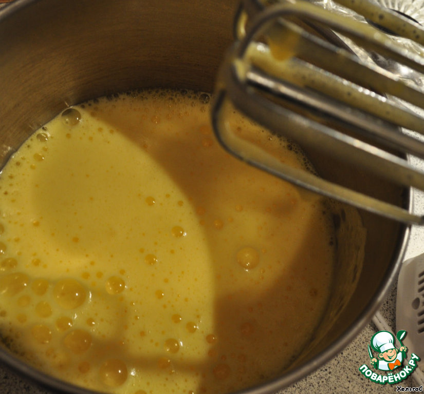 Соединим муку со взбитой смесью и опять все хорошенько перемешаем.