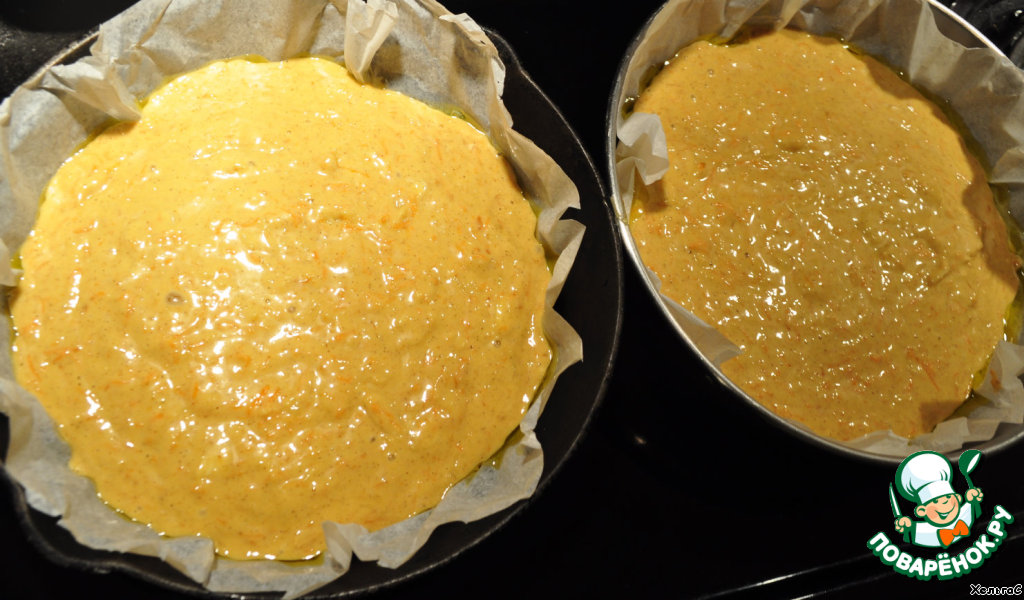 В проложенные бумагой для выпечки и смазанные маслом сковородки или форму для выпечки выложим нашу смесь