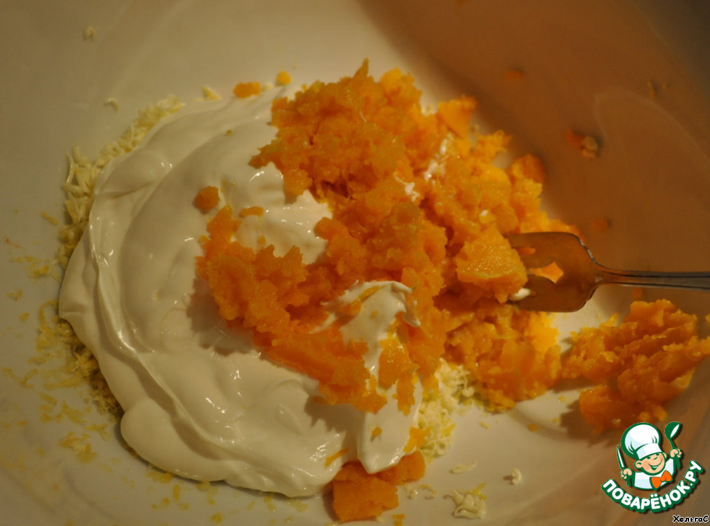 Тыквенное пюре из уже сваренной тыквы тоже пойдет сюда.