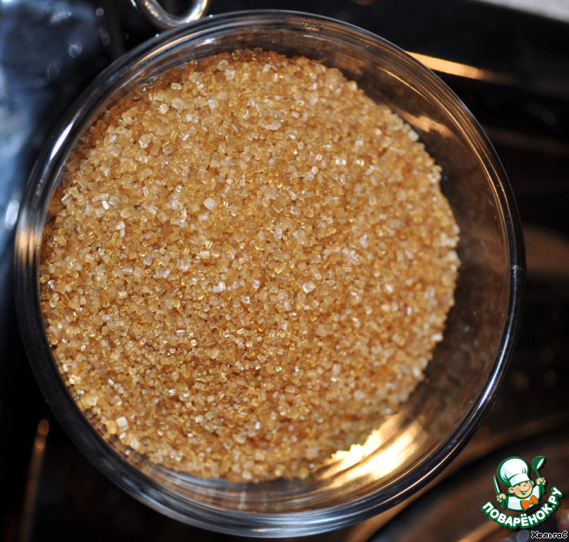 Добавим стакан коричневого сахара, он придаст необыкновенную пикантность и сладость.