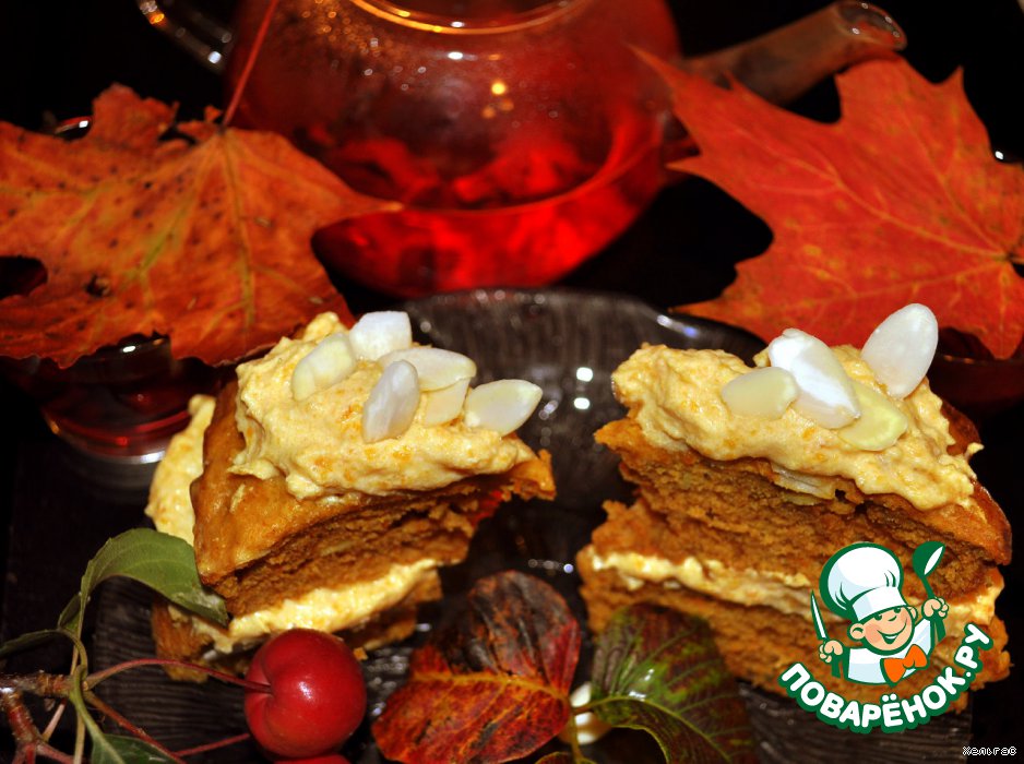 Кекс осенний с яблоками, морковью и тыквенной кремовой прослойкой