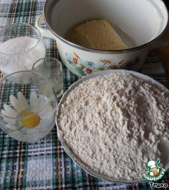 250 г сливочного масла перетираем с 2/3 стак. сахарной пудры и 2 стак. муки.