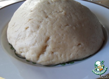 Добавляем 1/4 ч.л. соды и 1 ч.л. лимонного сока. Перемешиваем. Теперь вливаем 3-4 ст.л. воды и замешиваем эластичное тесто. Оборачиваем его пищевой пленкой и кладем в холодильник на 20 мин.