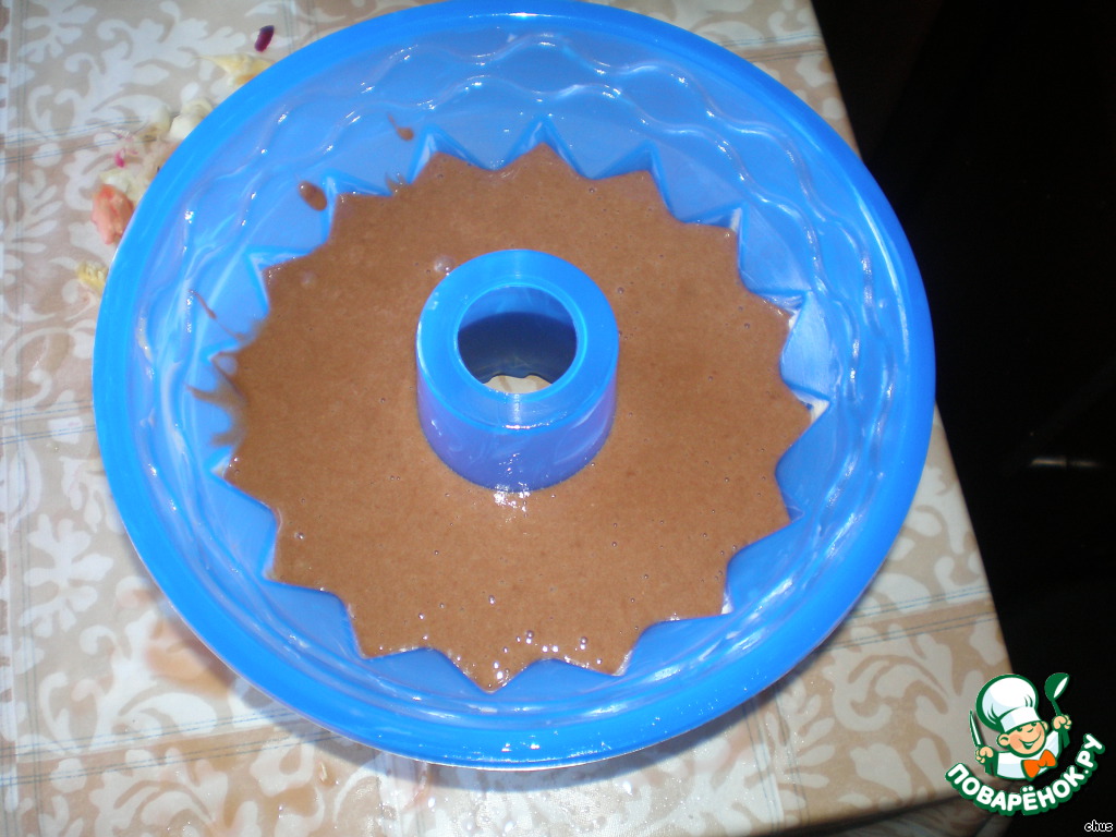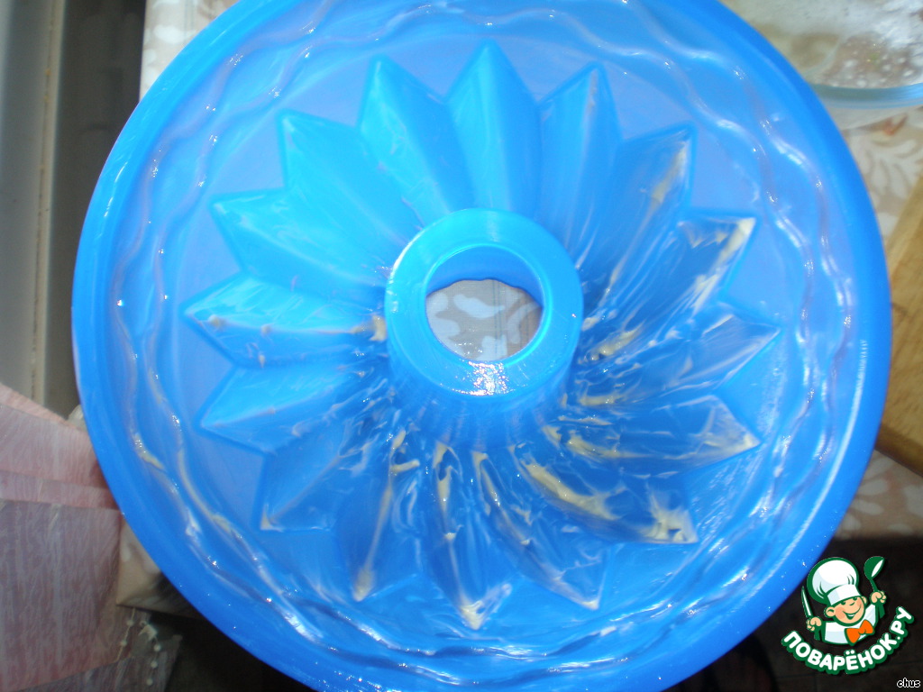 форму смазать жиром. У меня силиконовая для кольцевого кекса