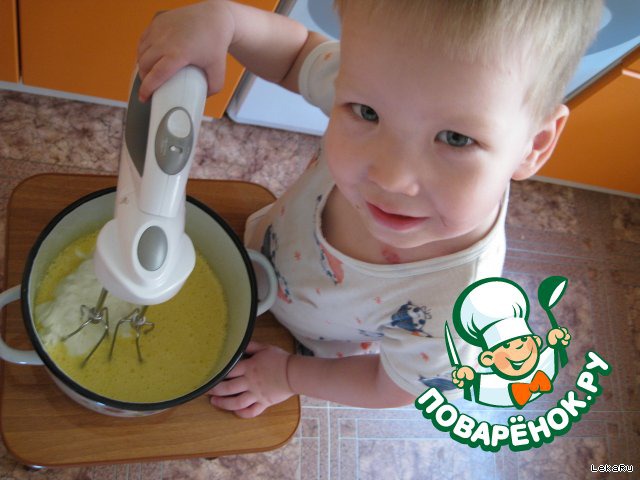 А для ребенка я кусочки кекса промазала детским творожком.... ну он же так помогал!!!