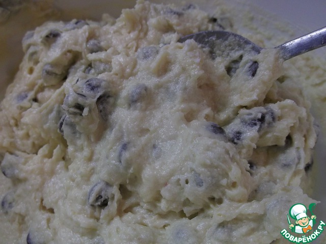 Ввести мучную смесь к масляной, хорошо перемешать.