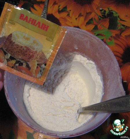 Муку смешать с содой и ванилином и добавить в шоколадно-яичную массу.