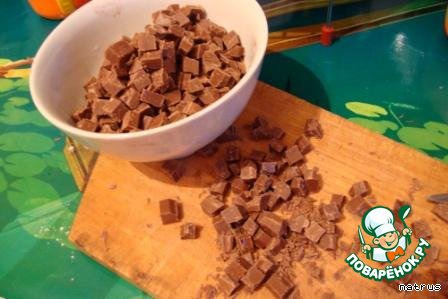 Шоколад порубить ножом на кусочки примерно по полсантиметра толщиной