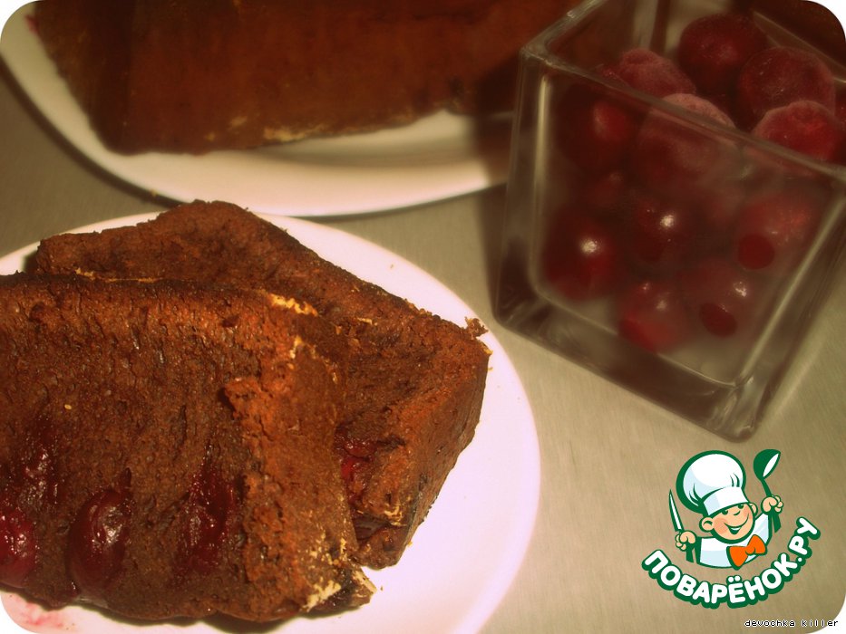 Яйца взбить с сахаром ванильным и просто сахаром, растопить на медленном огне масло с шоколадом. Смешать яйца и шоколадно-масляную смеси, постепенно добавляя муку. Смазать форму сливочным маслом, влить туда наше тесто, сверху положить вишни. Выпекать в духовке 45 минут(если форма одна глубокая, как у меня) при температуре 180 *.