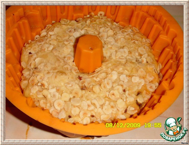 Верх кекса посыпать орехами и выпекать 30 минут или до сухой палочки.