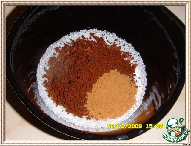 В маленькой чашке смешать 1/3 стакана сахара + 2 ст.л. кофе + корица.