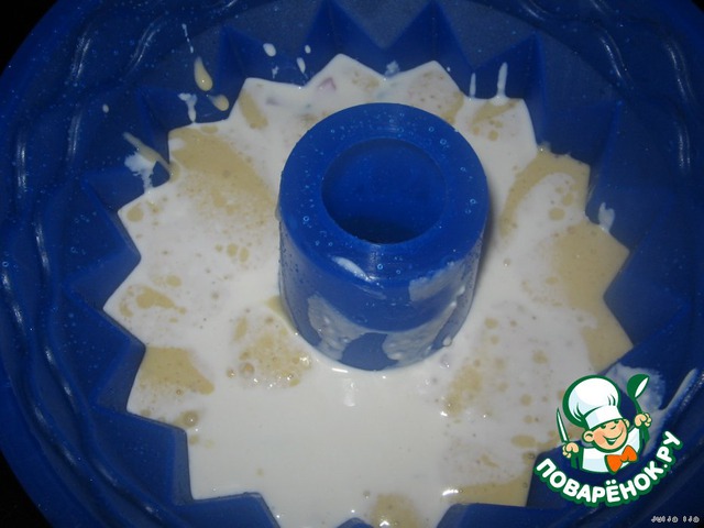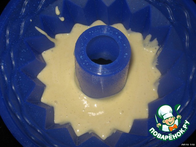 Силиконовую форму сбрызнуть водой (обычную обильно смазать сливочным маслом и можно присыпать манкой. Я в обычной не пекла, потому советую так, на всякий случай).