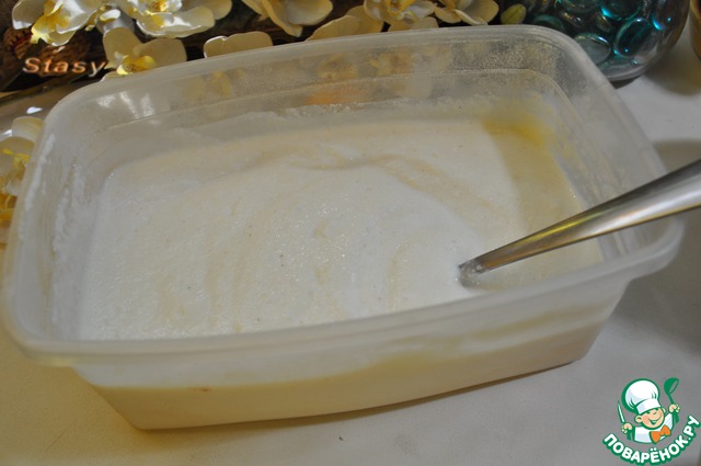 Размягчённый маргарин взбиваем с сахаром и ванилином, добавляем яйца и ещё раз взбиваем.