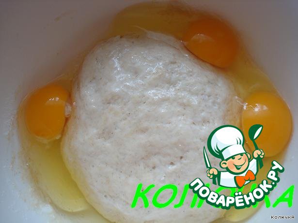 Когда тесто поднялось, добавляем 3 сырых яйца, мешаем и ставим снова, чтобы поднялось.