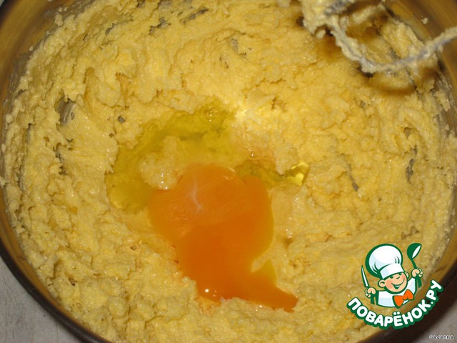 По одному втереть яйца, тщательно вымешивая после каждого.