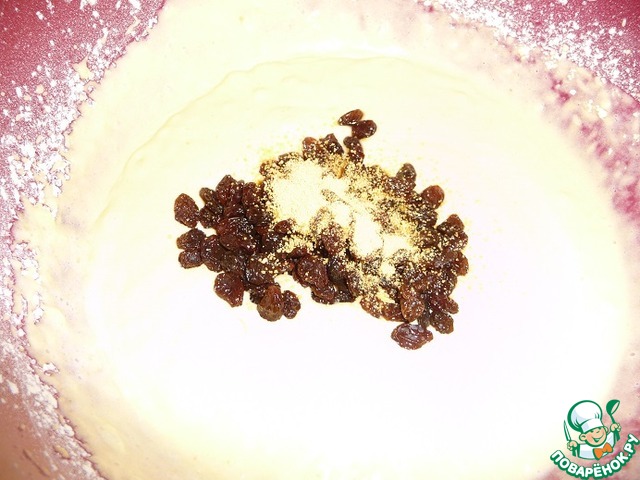 Добавить изюм с ромом и апельсиновую цедру, все перемешать.