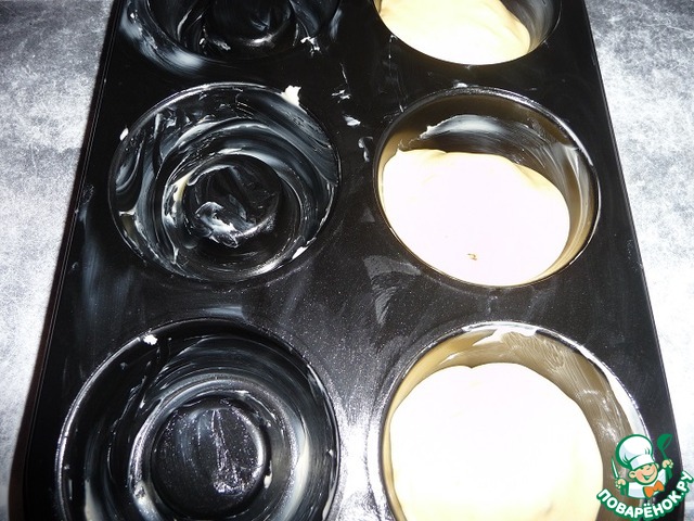 Металлическая форма у меня в виде корзиночки. Эти кексики заполню конфитюром.