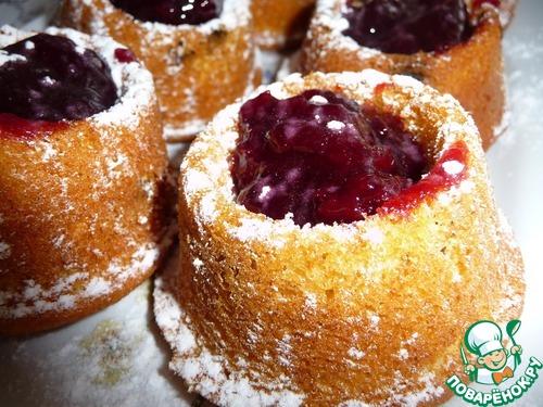 Кексы из кукурузной муки на сливках с вишневым конфитюром